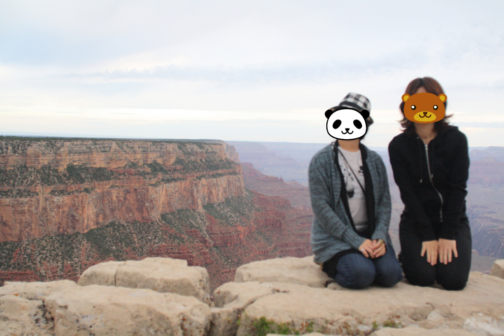 LAから車で9時間ほど運転してグランドキャニオンへ。会社が終わってから色々準備してちょうど朝日にいい頃に到着!でも、曇ってたね。本当は徐々に赤くグランドキャニオンが染まっていくのを見せたかったのに;;