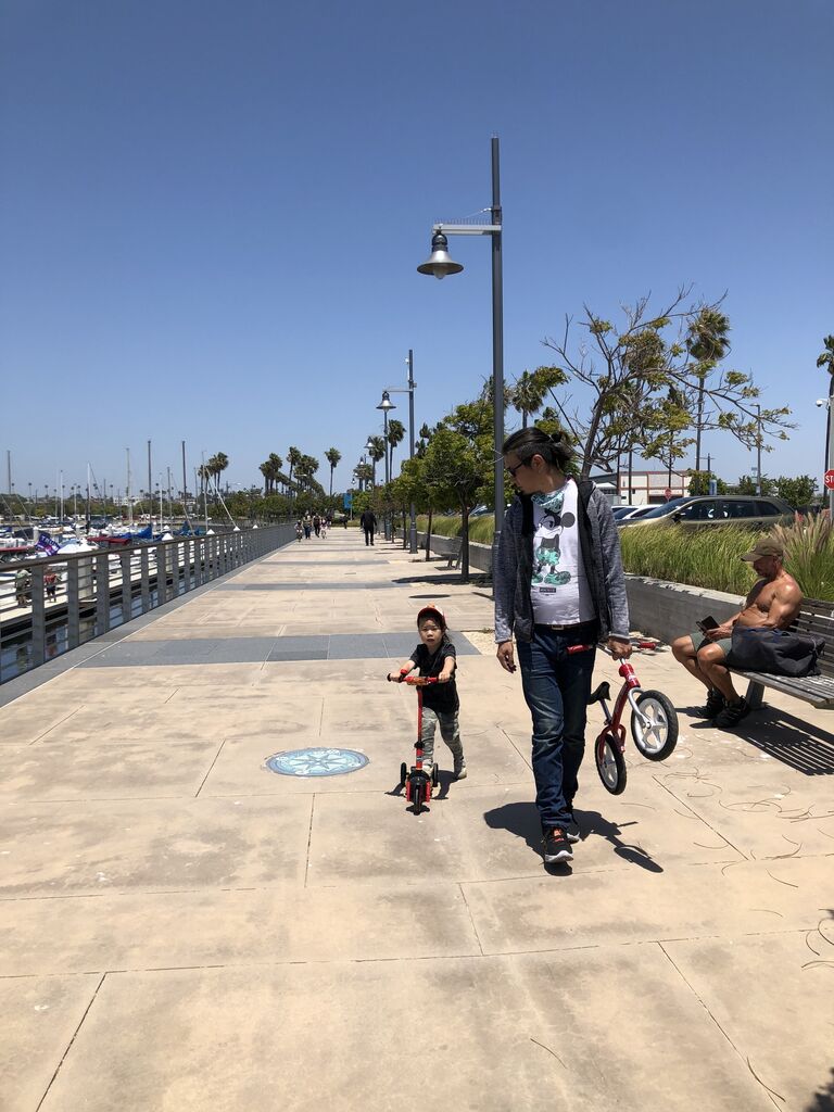 というわけで、ストライダーの練習に長めのコンクリートがあるバイクレーンへ。