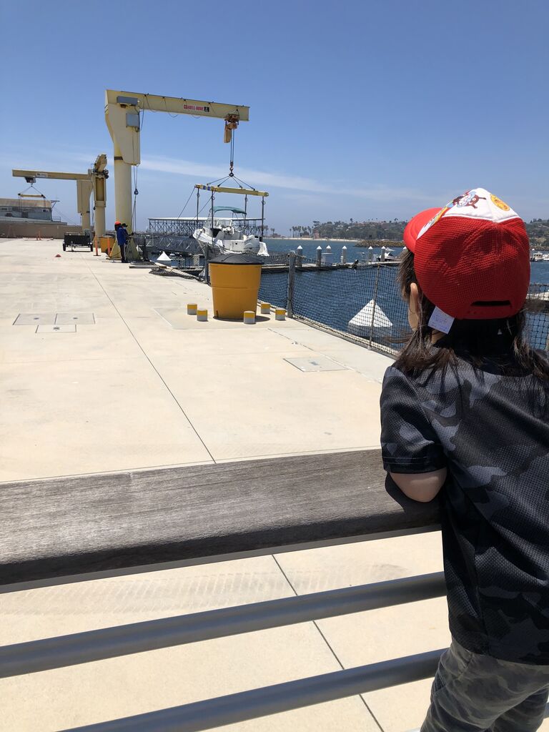 個人の船を港に下ろす作業をするのをみて、「みてークレーンゲームだよー」って言ってました。