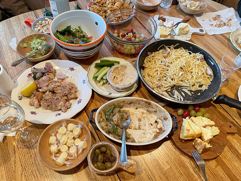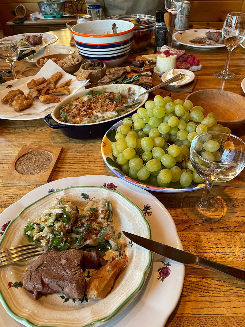 サンクスギビングデーのディナーは、みんなターキー苦手ということでフィレミニョンにしました。フルーツ、スナック、グリーンビーンズキャセロール、サラダ持ち寄りパーティ。