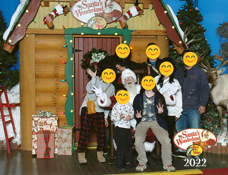 帰りにオンタリオミルズのバスプロショップに寄って、おもちゃで遊んで、みんなでサンタさんと写真を撮って、帰路に付きました。