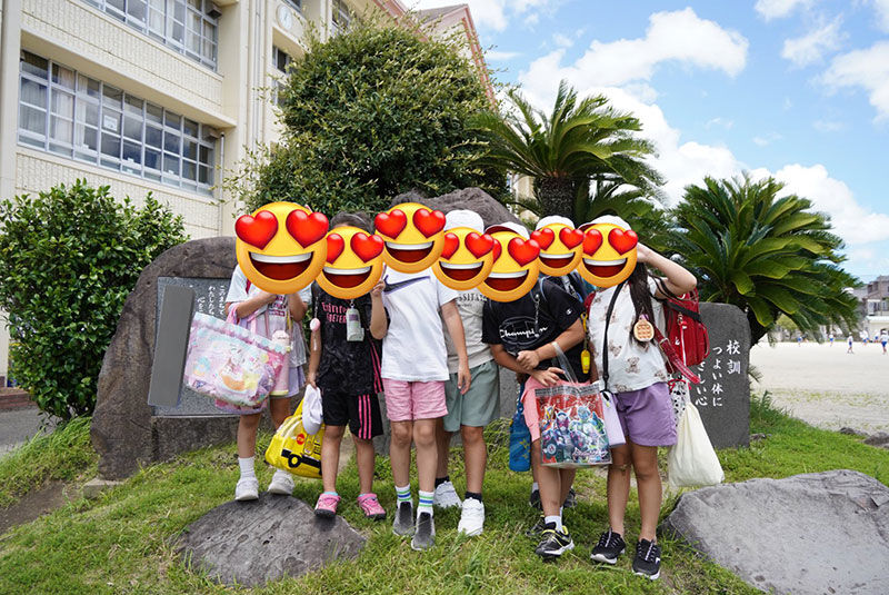 鹿児島では、小学2年生として体験入学をやらせてもらいました。給食、お掃除、昼休み。プールの授業などなどいろいろ楽しかったみたいです。
